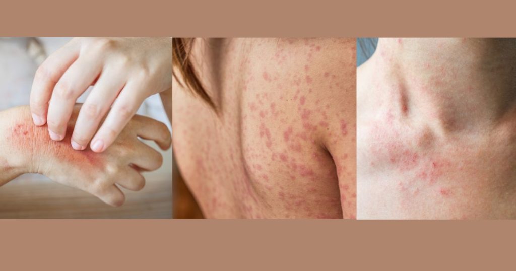 - 風疹樣反應:類似風疹的廣泛性紅色斑點,常伴隨癢感。